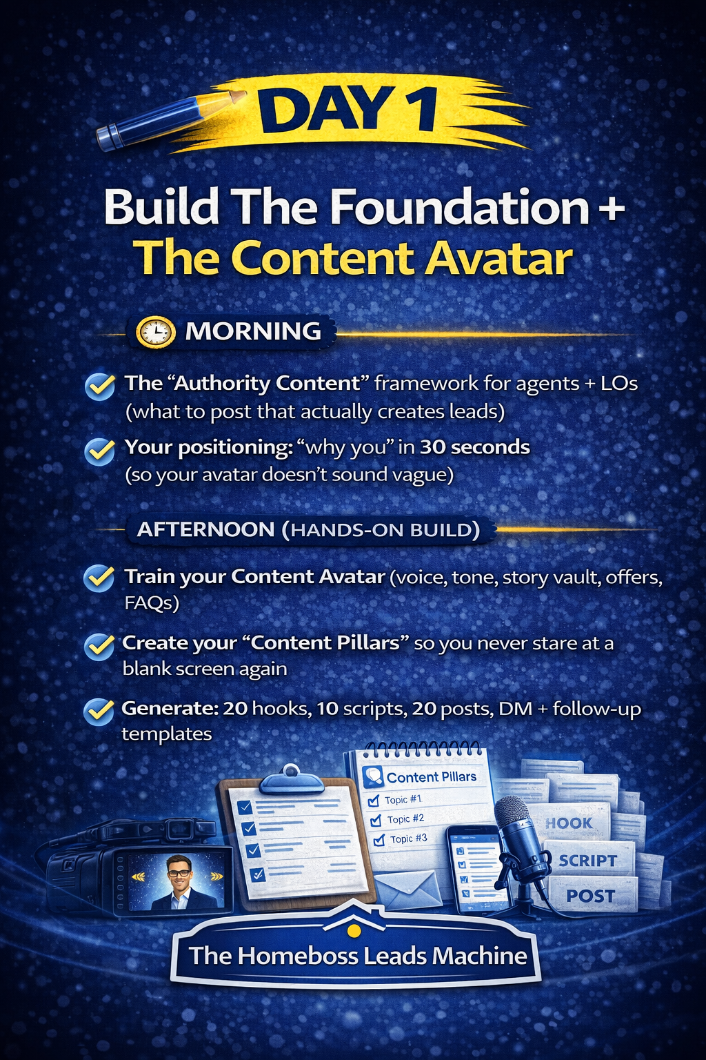 We teach you the workflow and provide compliance-friendly frameworks. You remain responsible for your content and final brokerage/NMLS approvals.